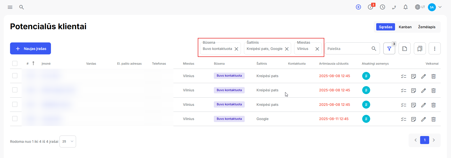 Filtrų pasirinkimai, kaip ir anksčiau, bus atvaizduojami virš įrašų lentelės, todėl visuomet matysite, kokie filtrai yra aktyvūs.