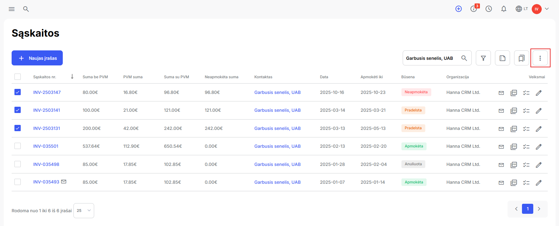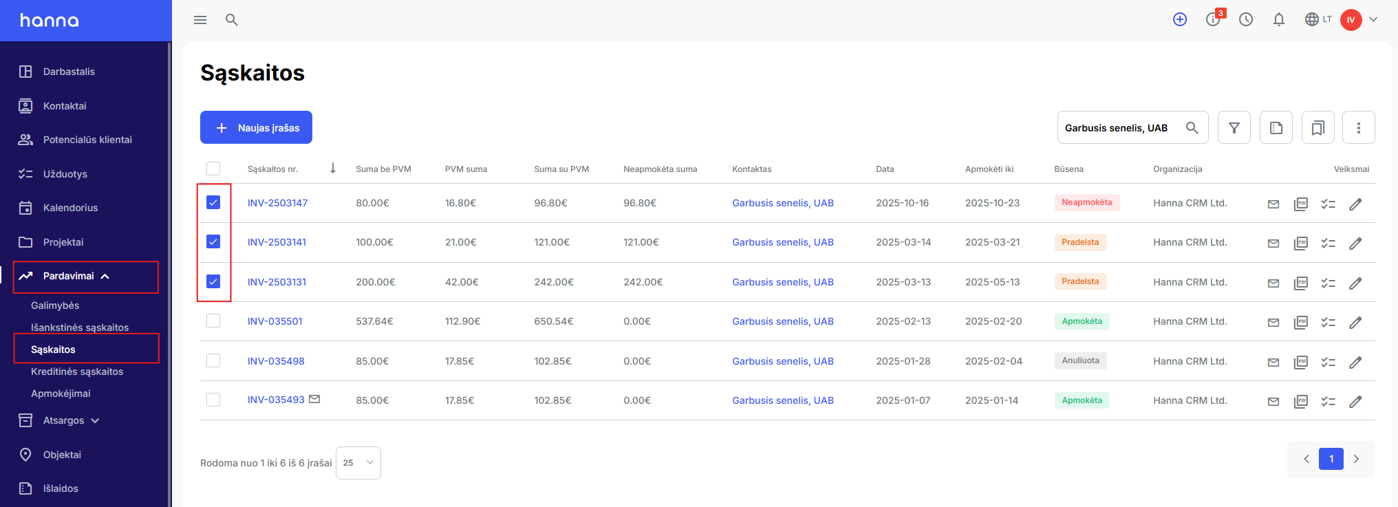 - Sąskaitų sąraše pasižymėkite norimas sąskaitas.