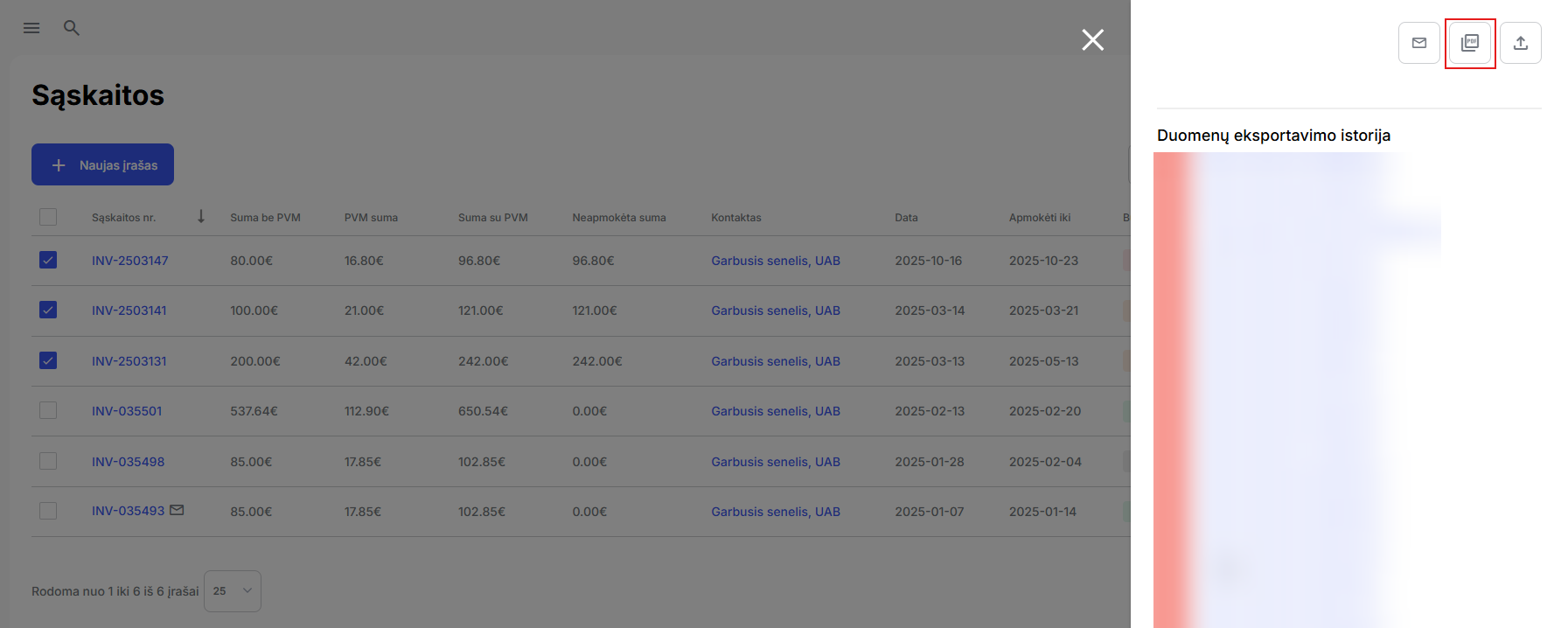 Nuo šiol sistemoje bus galima susigeneruoti masinį PDF dokumentą su pasirinktų sąskaitų peržiūromis. Tai naudingas papildymas dirbant su buhalterinėmis programomis ar norint nusiųsti kelias sąskaitas klientui vienu kartu.