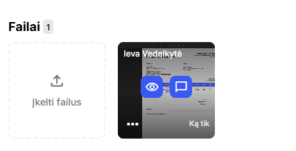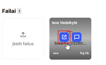 Jei tai PDF, Excel (ar kito formato failas) - paslinkite pelyte prie pridėto failo ir spustelkite ant pažymėtos ikonėlės, failo peržiūra atsivers naujame lange.