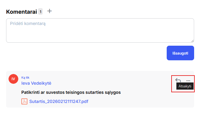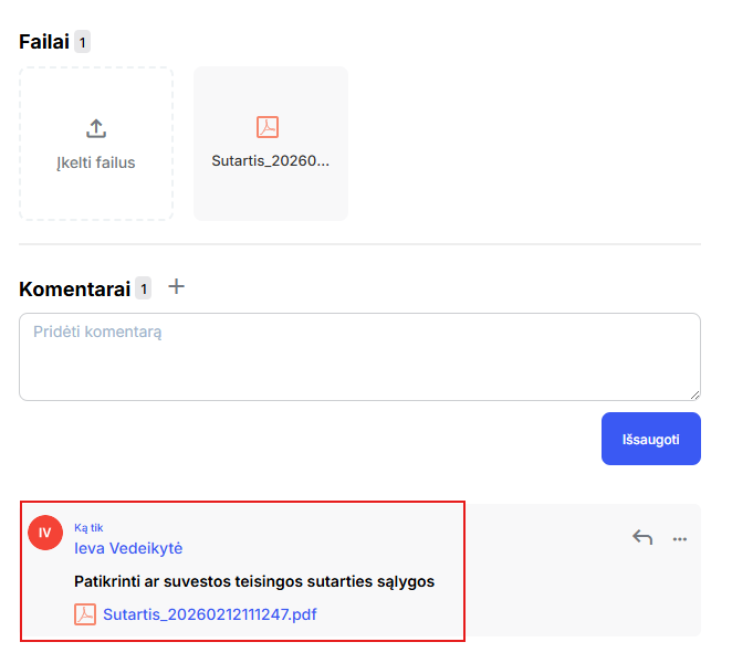 Jei paspausite ant komentaro ikonėlės, tuomet galėsite parašyti komentarą apie failą.