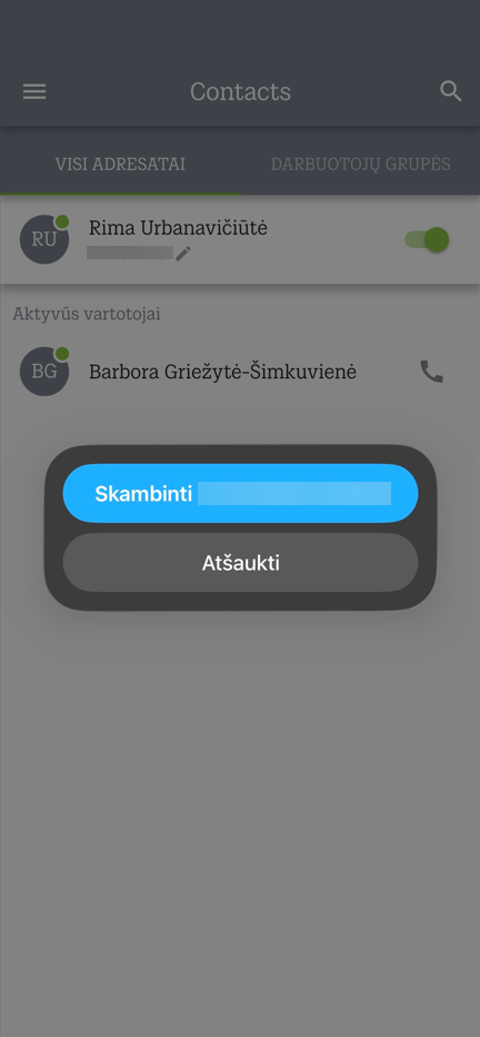 - Inicijavus skambutį sistemoje, įrenginyje iššoks pranešimas apie norimą vykdyti skambutį. Spustelkite ant šio pranešimo.